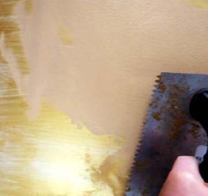1 | Over a wall prepared with white gloss interior latex paint, apply a thin layer of Metallic Texture Tint Base Gold with a trowel and allow to dry.