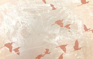 2 | Draw silhouettes of birds in various sizes, with some overlapping and one or more at a larger scale than all the others, designated to be in the foreground.
