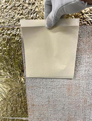 8 | Add a clear coat of your choice to the wall to prevent the Imitation Gold Leaf from oxidizing. Here is the final texture.