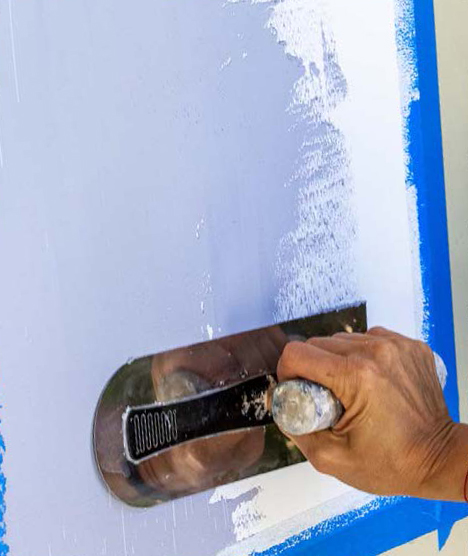 2 | Apply Sandstone all over the surface with a trowel, finishing off the direction of the trowel marks vertically. Trowel this layer smoothly and evenly with minor texture. Allow to dry.
